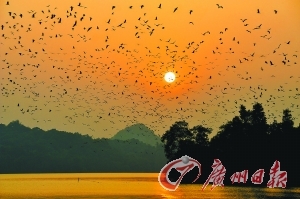 傍晚时分,肇庆星湖万鸟归巢。