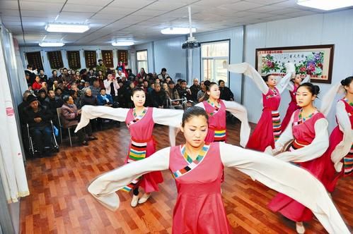 这次,为老人们带来精彩舞蹈表演的是省城水木年华舞蹈培训学校的二十多名2014届艺考生。“当老人们听说祖国的花朵要来表演时,都高兴得像过年一样,好多老人都提前一个多小时早早地在活动室等上了。”敬老院的负责人郭院长笑呵呵地对记者说,“就连两位腿脚不方便的大爷,也在工作人员的帮助下来了活动室。”