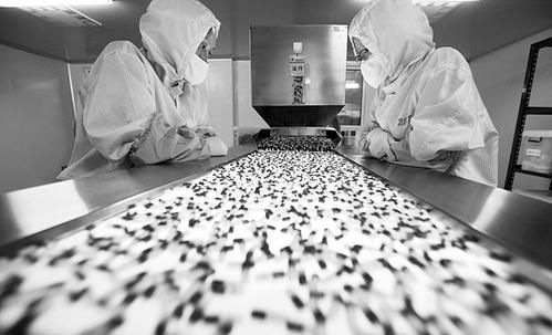 12月25日,榆社县山西广生胶囊有限公司工人在生产线检验产品。该公司全力推进技术创新,不断加强设备改造和换代升级,目前已建成72条全自动胶囊生产线,年产胶囊达300亿粒,产品销往国内700余家制药企业,并出口北美、欧洲、东南亚等地。