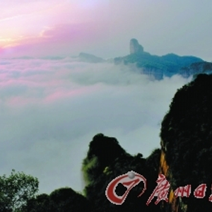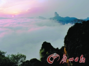 丹霞山最为人津津乐道的便是日出,长老峰游览区是丹霞山上观赏日出最好的地方,凌晨四五时沿着山路登上山顶,就可以看到旭日东升。站在长老峰巅,极目东方天际,云海涌动,霞光泛起,金色的“咸蛋黄”缓缓升起,群山笼罩着金光,十分悦目。