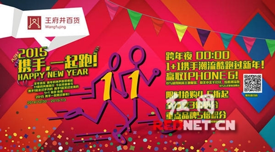 2014年12月31日跨年夜,长沙王府井百货“1+1”潮流酷跑启动,iphone 6等你抢。23点长沙最具时尚,蓝调爵士风度MAX乐队演唱会火力全开,此外王府井百货营业时间将调整至9:30-00:00,LED大屏幕全城倒计时,15小时超长嗨趴,一起迎接2015年崭新时刻。