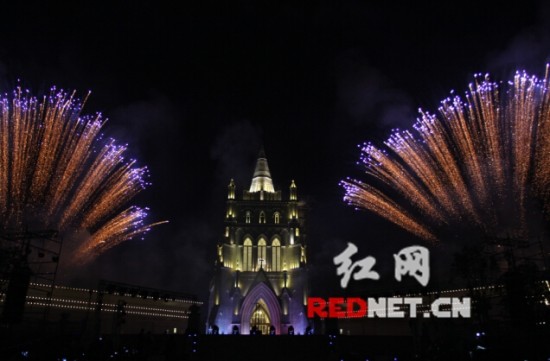 浏阳河婚庆文化园教堂七彩祈福微焰火秀