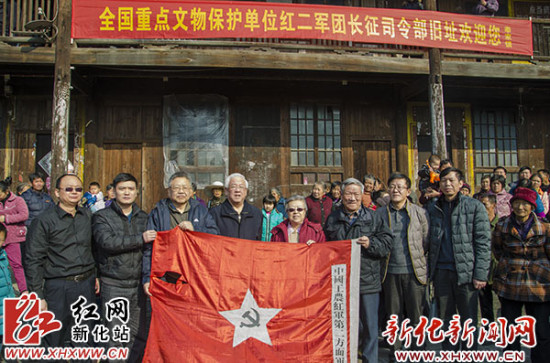 一走进旧址,胡乔木一行心情激动,迫不及待就拿出了“中国工农红军第二方面军”的旗帜进行合影留念。看到红二军团首长们使用过的雕花大床、桌椅、文柜及红军行军灯等文物,仿佛感受到了当时老一辈无产阶级革命家在那黑云压城的险恶环境中所表现出的坚定的共产主义信念。