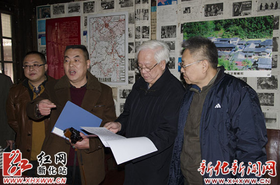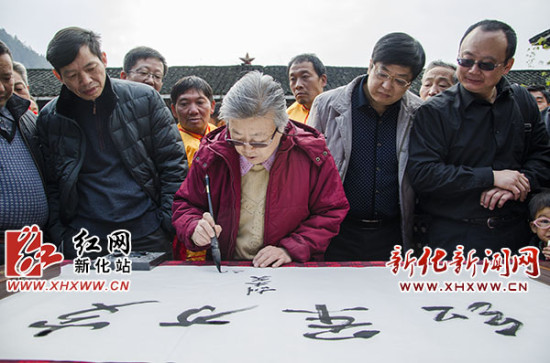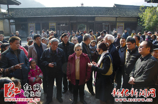 红网新化站1月5日讯(分站记者 伍荟双)1月3日上午,北京市延安儿女联谊会会长、胡乔木之女胡木英,谢觉哉之子谢烈及中国秘书协会研究中心主任助理梁宁宁、王东哈和朱建勇一行,来到新化县奉家镇红二军团长征司令部旧址,缅怀革命先烈的丰功伟绩,并在此留下“红军万岁”的珍贵墨宝。政协副主席张卫平等陪同。