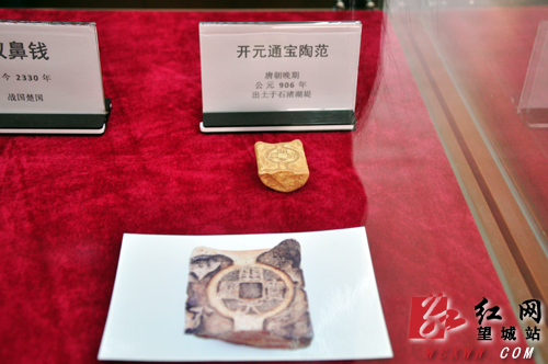 望城区首个中国历代钱币展在望城区欧阳询文化园内开馆,其中展出的“开元通宝”钱陶范是目前全世界发现的唯一一枚。(刘赛 摄)