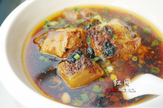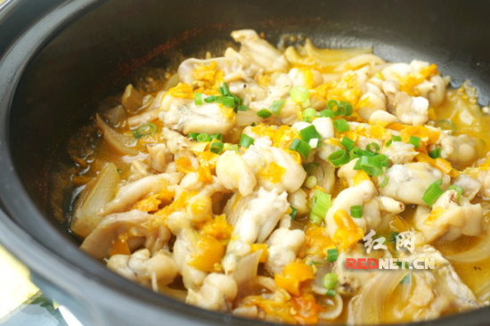 长沙食客爱吃的牛蛙,这里的做法是用砂锅焖,洋葱打底,配上非常入味的小米酱辣椒,牛蛙肉鲜嫩入味,洋葱也非常入味,是比较清淡的牛蛙吃法。