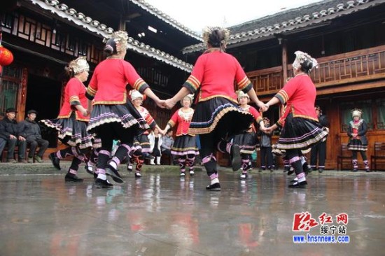 (上堡村民跳起侗舞)