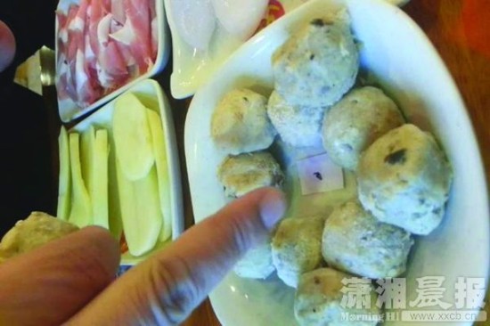 “这可能是包装残留物,我们这不回收剩菜”身穿黑色工作服的女性服务员辩称。话未说完,记者C便在墨鱼和鱼丸上发现了记者B所做的标记。面对记者C的质疑,这名女性工作人员坚称,墨鱼、土豆、鱼丸不是别人使用过的剩菜,“只能换菜,不能退菜”。