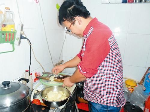 王旭刚孤身来省城闯荡,借住在姐姐家。工作很辛苦,早上7点半从家走,晚上9点才回来。妻子和刚满一岁的儿子都在临县老家。周末休息,他给一家人蒸土豆丸子。“我妈妈就会炒土豆,做土豆拨烂子,只有回老家才能吃到土豆丸子!今天,舅舅要给我做了!”8岁的外甥女不时挤进厨房,高兴地看上一眼,然后又欢快地跑出去了。不擅长做这道饭的姐姐王旭梅,只能在旁边打个下手,她说,他们家兄妹三个,就数弟弟做饭做得好,家里包饺子、做擦尖,弟弟可利索了。