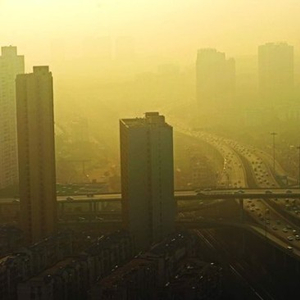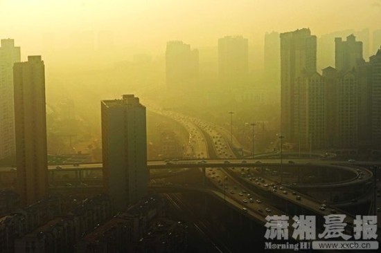 1月14日16点左右,长沙市新中路立交桥附近,高楼在雾霾中隐约可见。图/潇湘晨报记者陈勇