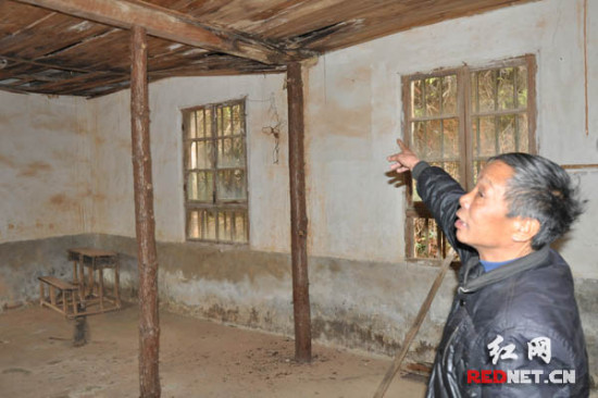 (白坪村小学校长赵友煌带领记者参观小学旧址。)
