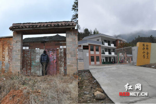 (在钟江武的帮扶下,白坪村小学由原来的危房换成了崭新的教学楼。)