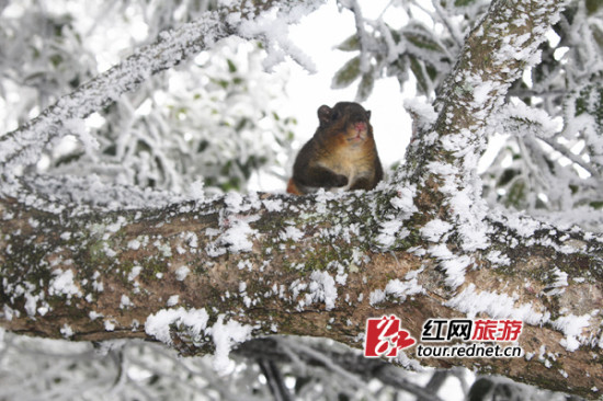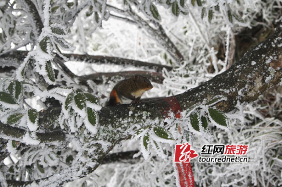(雪景太美,小松鼠也忍不住出来欣赏了。)