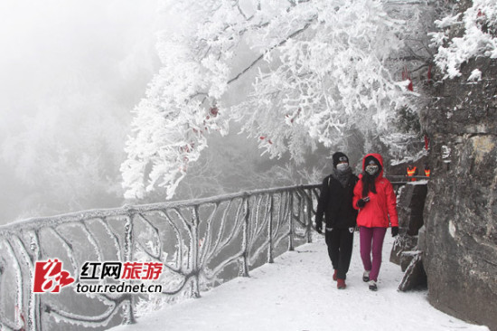 随着赏雪游客的逐日增多,天门山景区加大游道除冰防滑工作,同时增加景区安全巡视力度,确保游客游览安全。据天气预报显示,未来几天张家界地区将持续低温雨雪天气,天门山预计也将迎来更大的雪,本周末是来天门山玩雪的好时机。