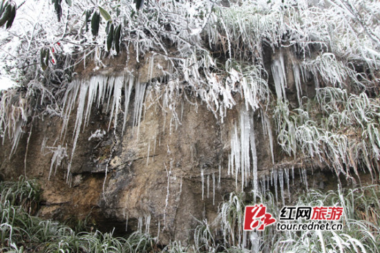 (崖壁也被冰层覆盖。)