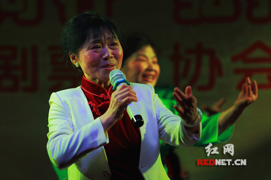 (票友李赛花等在表演 自编自演的京歌表演唱《安化黑茶传天下》)