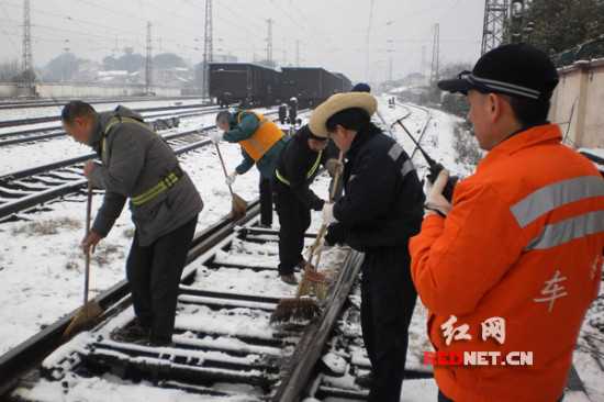 广铁长沙车务段打冰扫雪保列车运行畅通(组图)