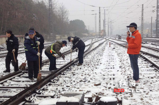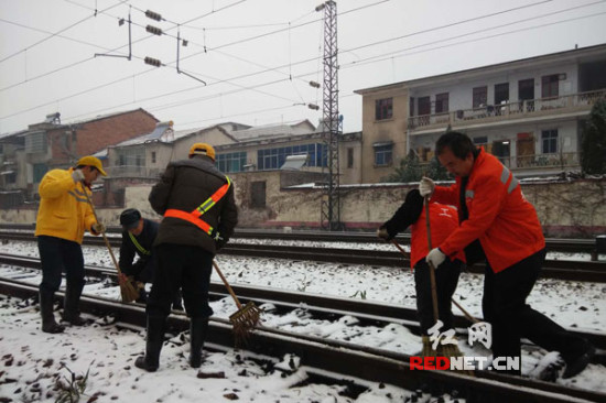 (原标题:广铁长沙车务段打冰扫雪保列车运行畅通(组图))