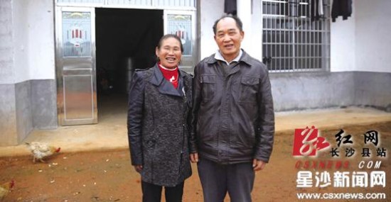 春华镇的黄继尧夫妻去年12月住进了新居,两人在新房前笑开了花。这只是长沙县危房改造重点援建的一个典型案例。资料图片
