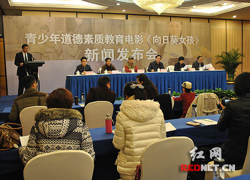 (青少年道德素质教育电影《向日葵女孩》新闻发布会在长沙召开。)