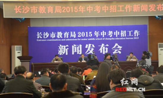 (2月8日下午,长沙市教育局召开2015中考中招政策新闻发布会。)