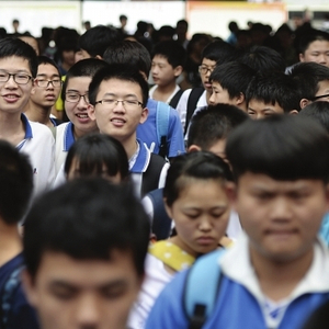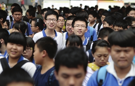 2014年6月16日,长沙市稻田中学中考考点,上午的语文考试结束后,考生走出考场。图/潇湘晨报记者 辜鹏博
