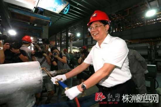 株洲市委书记贺安杰为旗滨点火(资料图/通讯员何勇 摄)