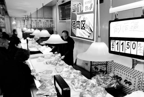 2月11日,记者在田和超市看到,猪肉均价已由1月份的12元/斤降至11元/斤。其中,前后腿、中腰已分别出现10.5元/斤,13.8元/斤的跳水价。店长肖凯介绍,以前没有卖过这个价,这是7年来年肉价最低的。“记得2007年前后,店里一斤猪肉曾卖到16元。”