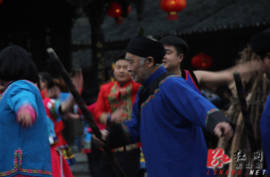 红网龙山站2月21日讯(通讯员 彭开科 刘怡 梁涛)摆手舞,土家语叫“舍巴日”。“舍巴”意为“摆手”,“日”即“做”,“舍巴日”,汉语意译为跳摆手舞。是土家人祭祀祖先与庆新年、祭先祖、祈丰收的集体活动。其动作古典朴实、奔放洒脱,有“东方迪斯科”之称,被国务院列入第一批国家级非物质文化遗产名录。