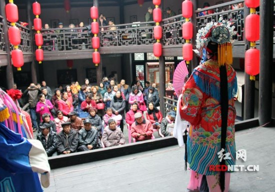 洪江古商城古戏台唱大戏庆新年 游客和市民免费观看