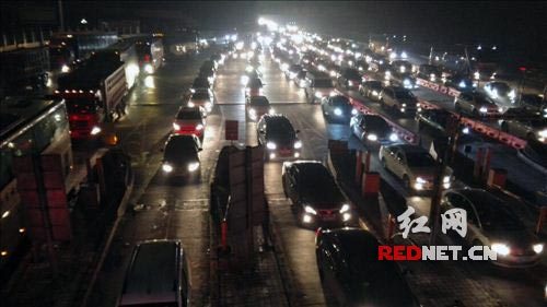 (2月25日零点金鱼石省际卡口车流,车流虽然巨大,不过秩序井然。)