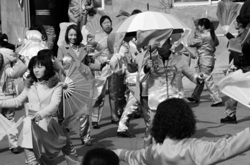 小山村里扭秧歌的人们。
