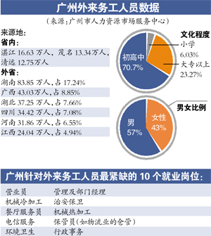 “还有两成多企业要外出招工,这两天市人力资源部门已带他们去了云浮、罗定。” 张宝颖说,而外出招工的地方,除了省内,湖南、广西、贵州的招工规模将是最大的,这与贵广高铁开通有关。