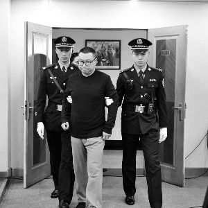 昨天一早,一辆警车穿过京城漫天雪花驶进朝阳法院。随后,身穿绿色军大衣、带着黑框眼镜的尹相杰走下囚车,其额前标志性的一撮头发荡然无存,双手被铐住。因有大量媒体前来旁听,法院门口之外,有警察拉起警戒线维持秩序。