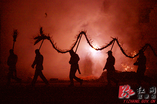 在欢快的鼓乐声中,香火龙摇头摆尾地穿梭于村里的小巷间,在夜幕中蜿蜒腾飞,栩栩如生。巡游途中,香火龙还表演了翻滚、跳跃、睡眠等动作,引路和尾随的两头狮子,除各自作翻滚跳跃之外,还作些引龙和随龙“护驾”动作,只见它们不时地点点“龙头”,向两旁观众和村民祝祷平安福祥。所到之处,村民们都会点燃烟花爆竹迎送,渴望沾上龙的福气,以祈求新年消灾弥难、风调雨顺、五谷丰登、人丁兴旺。“别看香火龙制作材料简单,但是制作工艺精巧、工艺流程复杂、造型威武、气势恢宏,群众参与性强,是一项典型的地域标志性文化传统呢!”黄家塝村支书黄京陆看的目不转睛。一声声爆竹、一阵阵沸腾、一暮暮烟火……传递着瑶乡人民对新一年发展的满满信心,我在“舞香火龙”的神奇魅力中沉迷留恋。