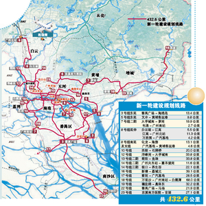 最近,地铁设计院一份内部通讯刊物在网上意外曝光,披露了正在研究的广州新一轮轨道交通建设规划方案。根据2014年12月1日市政府常务会议的意见以及市领导的指示,市发改委会同市规划局、地铁总公司,组织市交通规划研究院和地铁设计院,就地铁线网规划和未来十年的建设规划方案,向十区两市征求意见。相关机构据此进行方案优化和完善,1月22日,向陈如桂常务副市长作专题汇报。