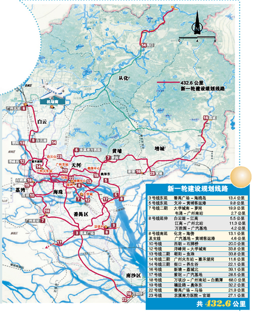 地铁设计院的内部刊物提到,广州已经上报国务院待批复的2020年城市总体规划,18号线北延段、22号线、23号线暂时不在远期线网的范围内。