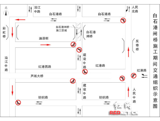 (石港闸桥施工期间交通组织示意图)