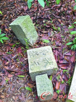在白云山犀牛岭,记者发现一片小山头已被挖,现场的建筑材料显示这里近期有施工。沿着刚垒砌的石阶往山坡另一侧走去,路上一座半截石碑引起了记者的注意。