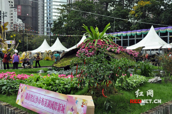 红网香港3月20日讯(时刻新闻记者 刘玉先 通讯员 王颖 文艳)3月20日,一年一度的香港花卉展在香港维多利亚公园举行。在展区醒目位置,由长沙梅溪湖国际新城带来的参展作品“芙蓉国里尽朝晖”,吸引了众多游客驻足观赏。