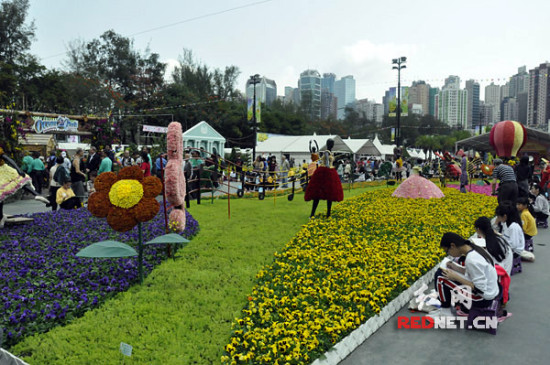 (3月20日,一年一度的香港花卉展在香港维多利亚公园举行。)