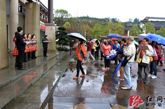 红网新宁分站3月24日讯(分站记者 陈哲 通讯员 颜克明)3月23日,湖南崀山北大门广场人声鼎沸,来自广东地区的羊年首趟崀山旅游专列1000余名游客顺利抵达新宁。崀山瑶家姑娘身着盛装,载歌载舞欢迎远方的客人。一碗碗醇香的米酒,一首首热情的瑶歌,一张张美丽的笑脸,美了瑶乡山水,醉了八方游人。这是去年崀山景区在珠三角、长三角地区全面开展冬季大促销活动以来,市场回馈的又一可喜成果。