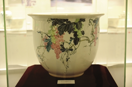 醴陵陶瓷艺术馆专门设计了瓷博会专场展览。作为馆内展览的代表作品,“硕果累累”大花缸吸引了众多目光,这件作品是时隔51年后首次回醴陵展出。“它是釉下五彩一代宗师吴寿祺晚年的经典之作,作为国庆献礼瓷于1964年陈设在人民大会堂湖南厅。”湖南省五彩国瓷研究所负责人、红色官窑鉴赏专家胡怀银告诉记者,“大花缸为纯手工制作,气势磅礴,技艺精湛,醴陵陶瓷艺术博物馆为其估算的保价就达到3000万元。”