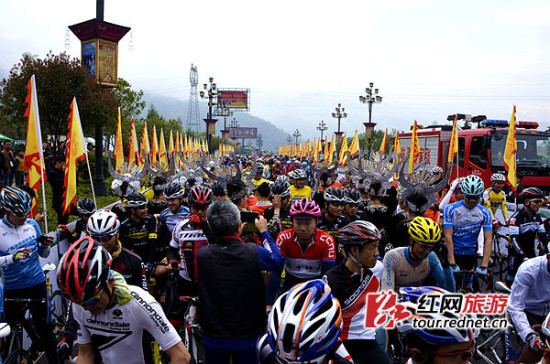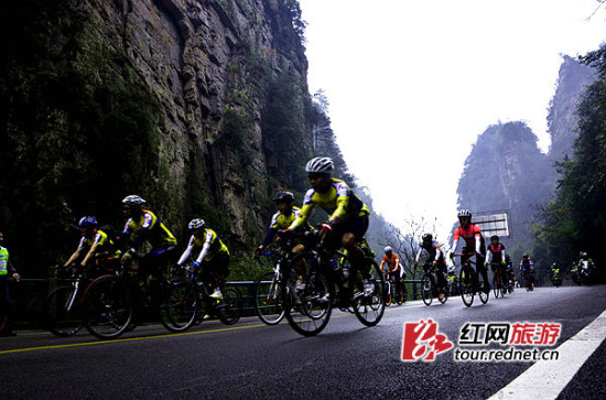 在今天的比赛中,选手分公路组、女子组和挑战组,沿武陵源城区湘西印象—百丈峡—插旗峪—梓木岗门票站,经核心景区水绕四门、十里画廊、吴家峪门票站,到达终点湘西印象,全长约33公里。整个骑程弯道多而险,是张家界目前举办的专业程度最高、赛道最为惊险的一次自行车骑行赛事,特别是整个赛事精心设计的世界自然遗产张家界地貌“峰林穿越”骑行线路,为来自海峡两岸的选手提供了最震撼、最激动人心的骑行体验。