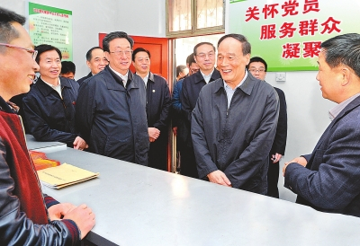 27日下午,王岐山还来到林州市姚村镇冯家口村党支部,与村党支部成员、老党员和群众代表亲切交流。从村两委班子的构成,到村委会选举情况,从村里有什么难办的事儿,到村民还有哪些期盼,王岐山一一详细了解。村民们兴奋地围拢过来,盛情邀请王岐山书记到家中坐坐,“王书记,您别走了,俺给您做手擀面!”一位中年妇女挽留说。一听说面,王岐山连连称赞说,“河南的小麦筋道,好吃!”阵阵欢声笑语洋溢在村委小院里。