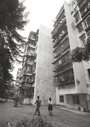 鹿丹村旧楼斑驳的墙体。
