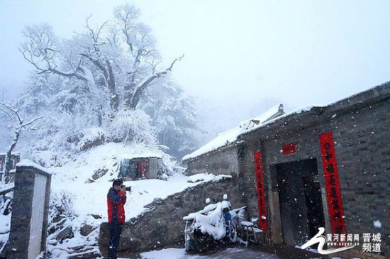 25日中午,历山朋友在微信发了一张历山下雪了的照片。让我再一次睡不着了。本来我已经感冒了半个月,好几次摄影活动都没敢去参加。正在午休的我,也不顾感冒了,赶忙起来,联系了几个博友,把换下的棉衣、保暖裤,棉靴等重新翻了出来,紧紧张张的忙碌一番,到三点多,驱车直奔沁水的下川。晋城当时连个雨点都没有。我们一路飞车,倒也顺利。过了中村,开始有了雨夹雪,越往山上走雨雾越来越大。我们小心翼翼的在盘山公路上行驶。到了白云洞附近,路更滑了。两边的雾凇雾挂从身边飞过。眼馋的我们停下车来欣赏了一番。一直到了下川村,吃了一点。几个博友想去夜拍飞雪。又出去转了一圈。回到客栈仍然余兴未尽,一直折腾到12点多还不能入睡。