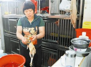 在罗湖布心市场,摊档上虽然已经没有了活禽,但档主对有关新政似乎不是太了解,有的还在处理刚刚宰杀的活鸡。
