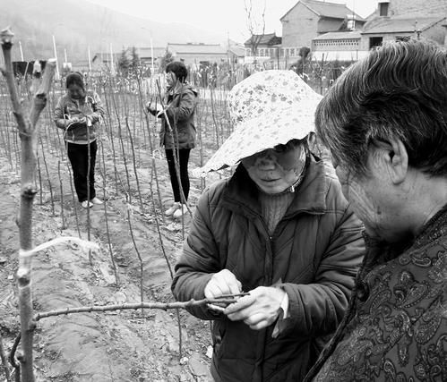 垣曲县左家湾村45岁的农民王丽芳是个深山“弄潮儿”。早在2009年,她就依托当地山清水秀的自然风光率先创办起当地第一个“农家乐”,在她的带动下,全村观光采摘型果业迅速发展到600多亩,不同形式的“农家乐”应运而生。今年她从绛县购回红梅花枝芽,共嫁接5000多株杏树苗木。图为王丽芳和她的姐妹一起嫁接红梅花。