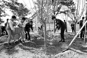 昨天,漕运码头公园正式开工建设。来自东城的居民和小学生在这里种下一棵棵油松、白皮松、玉兰(上图)。到8月公园建成时,市民可以欣赏到玉兰、海棠等观花植物,丽红元宝枫紫叶李等观叶植物以及金银木等观干观果植物。记者了解到,今年,东城区启动了明城墙遗址公园东南角绿化工程。计划在平整出来的1.44万平方米土地上,建成开放式的“漕运码头公园”,设置“雉堞铺翠”“角楼映秀”“玉棠新绿”三大景观,实现“三季有色,四季常绿”。
